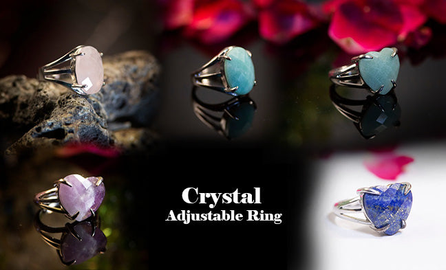 Natural Amethyst Crystal Heart ring in metal with Adjustable Size For Men And Women