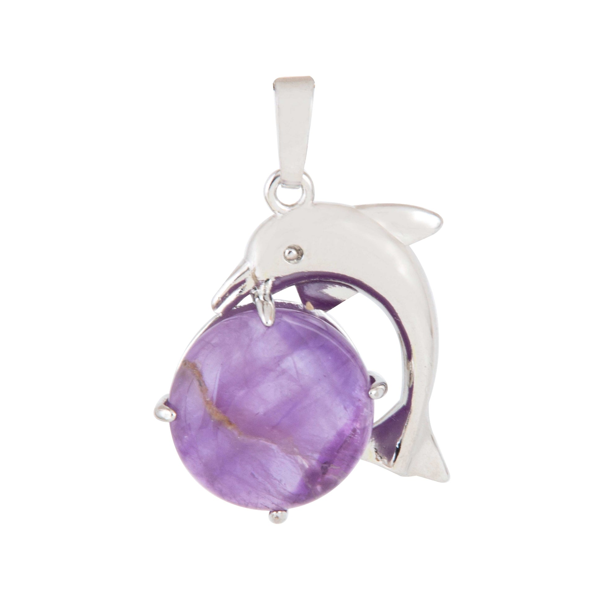 Natural Amethyst Dolphin Crystal Pendant in metal