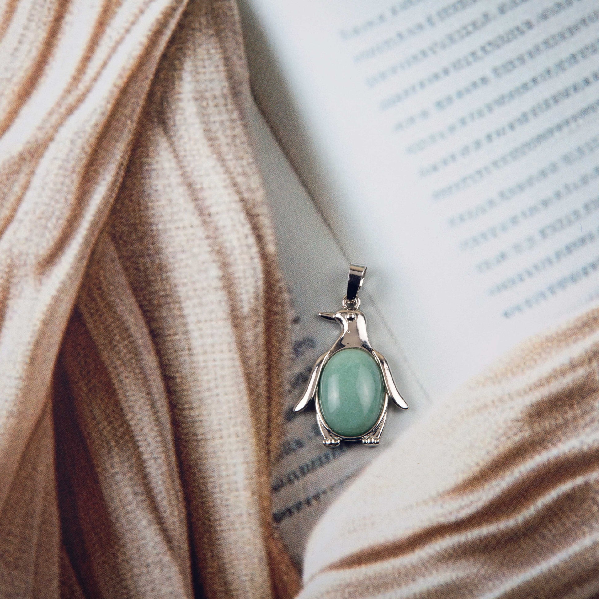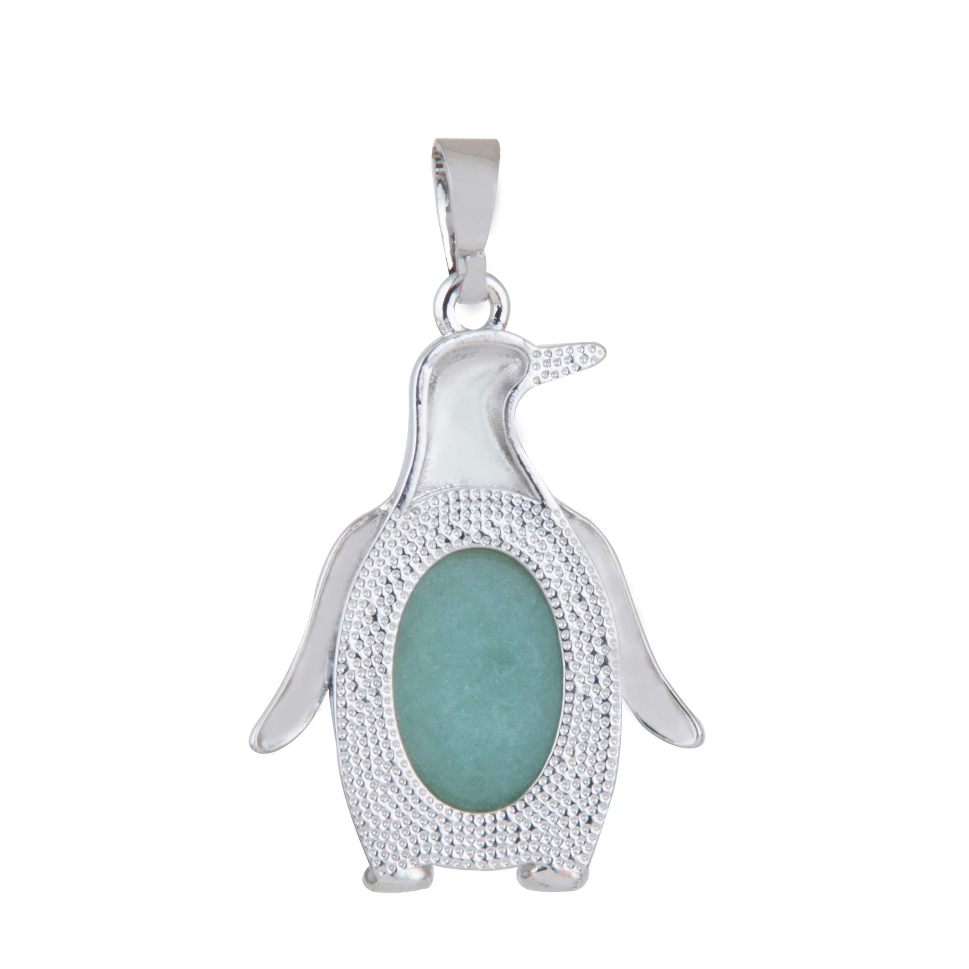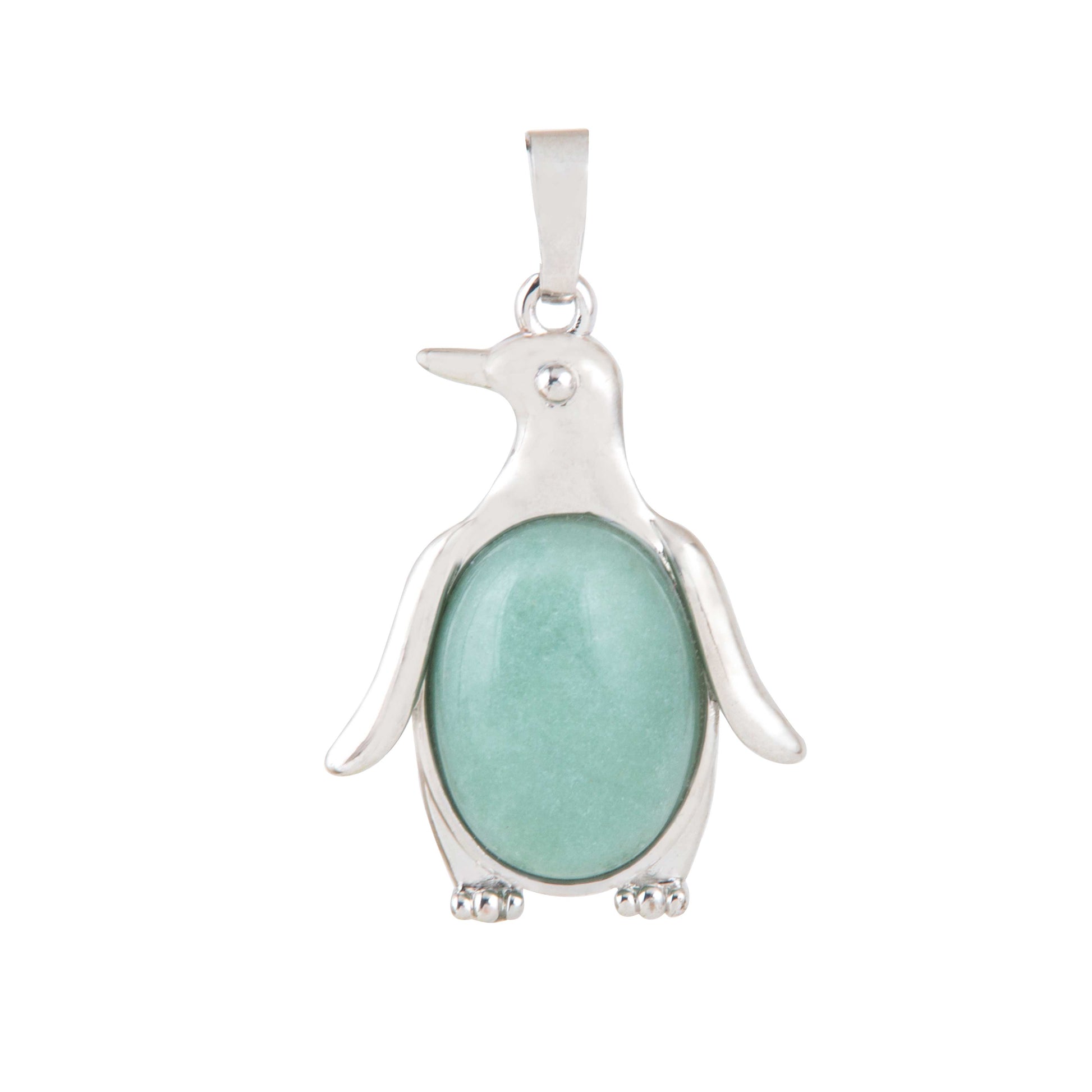 Natural Green Aventurine Penguin Crystal Pendant in metal