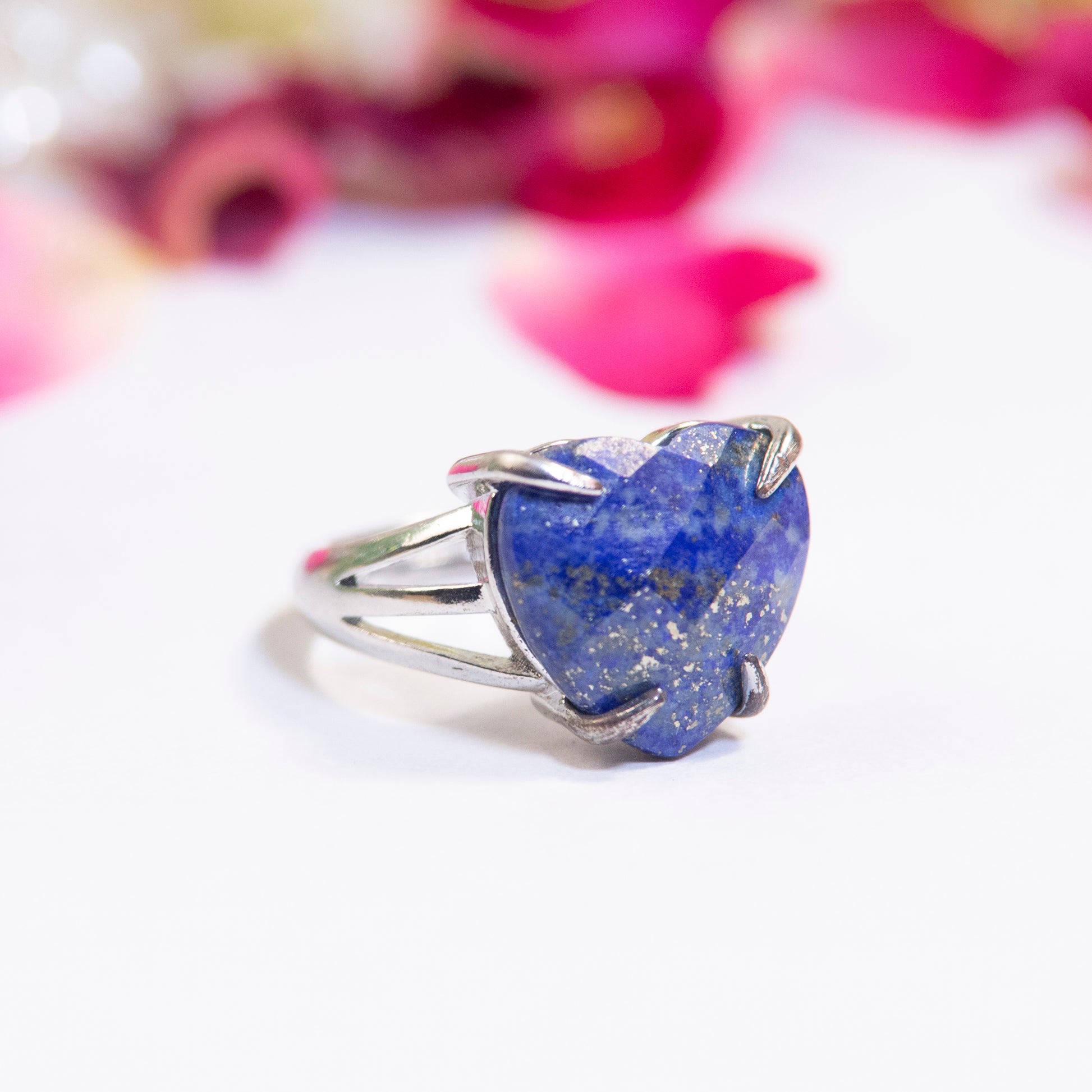 Natural Lapis Lazulli Crystal Heart ring in metal with Adjustable Size For Men And Women