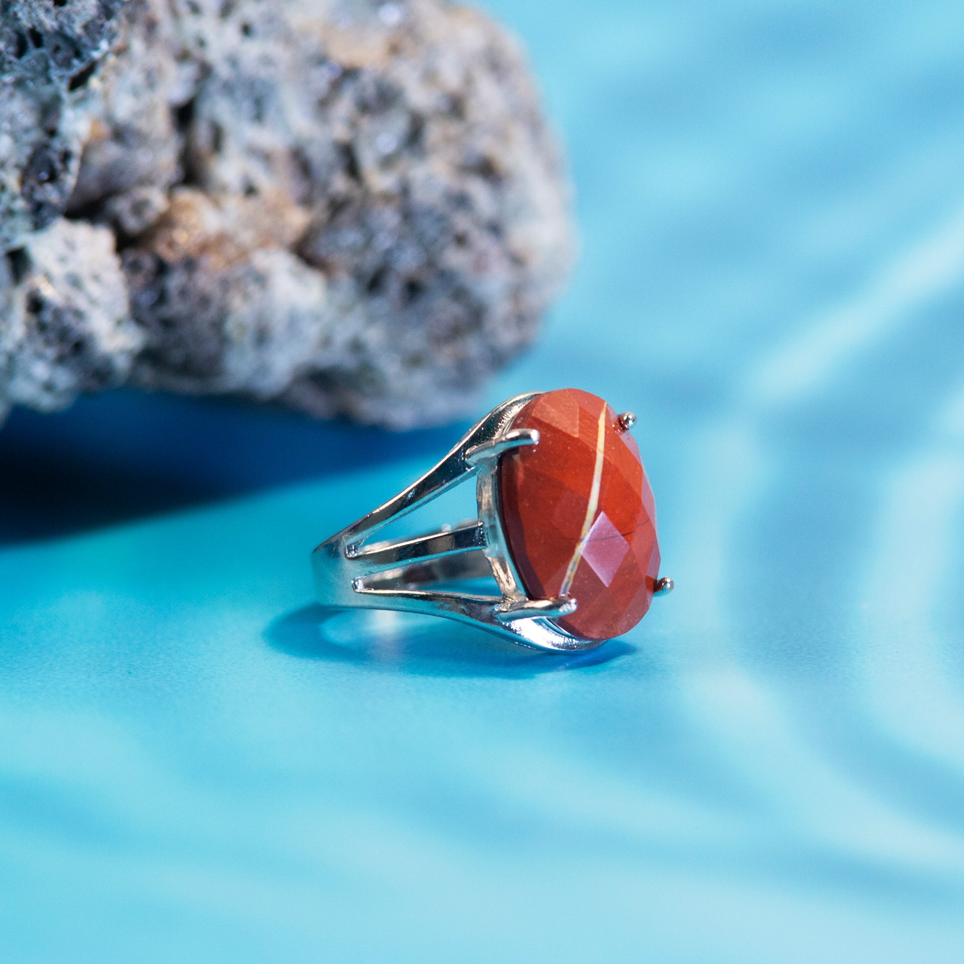 Natural Red Jasper Crystal Oval ring in metal with Adjustable Size For Men And Women