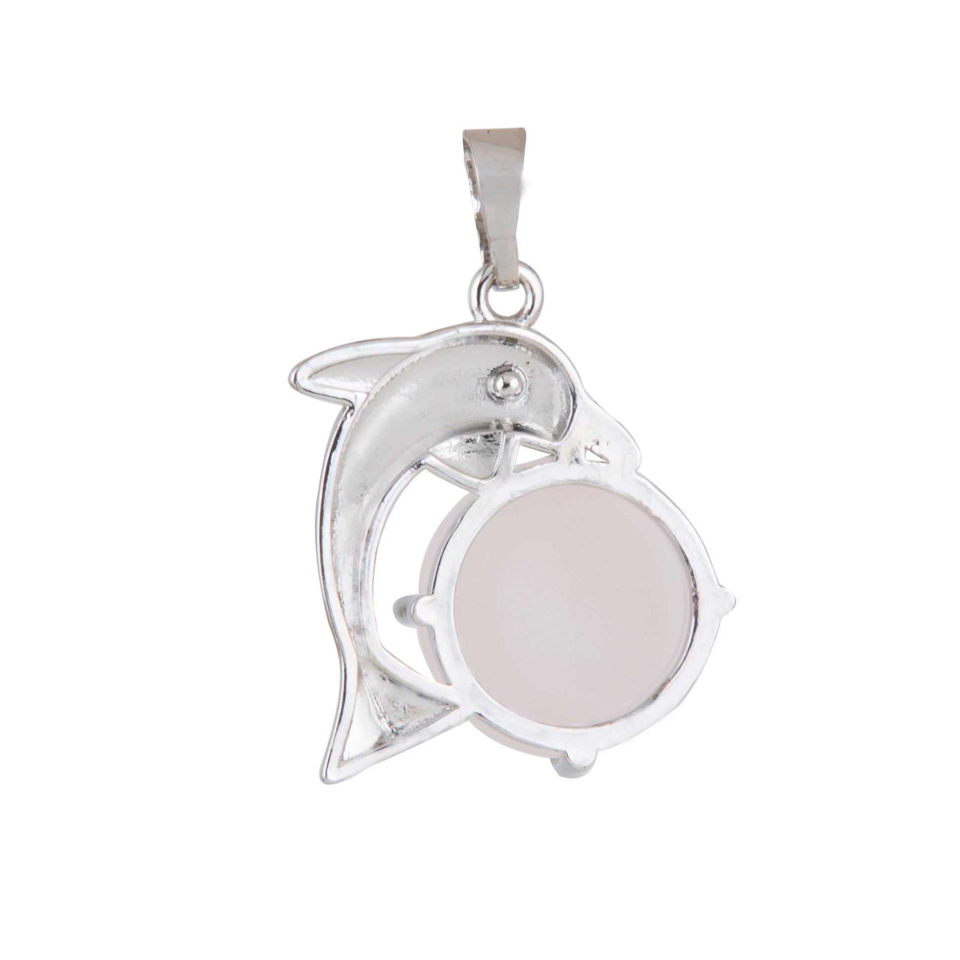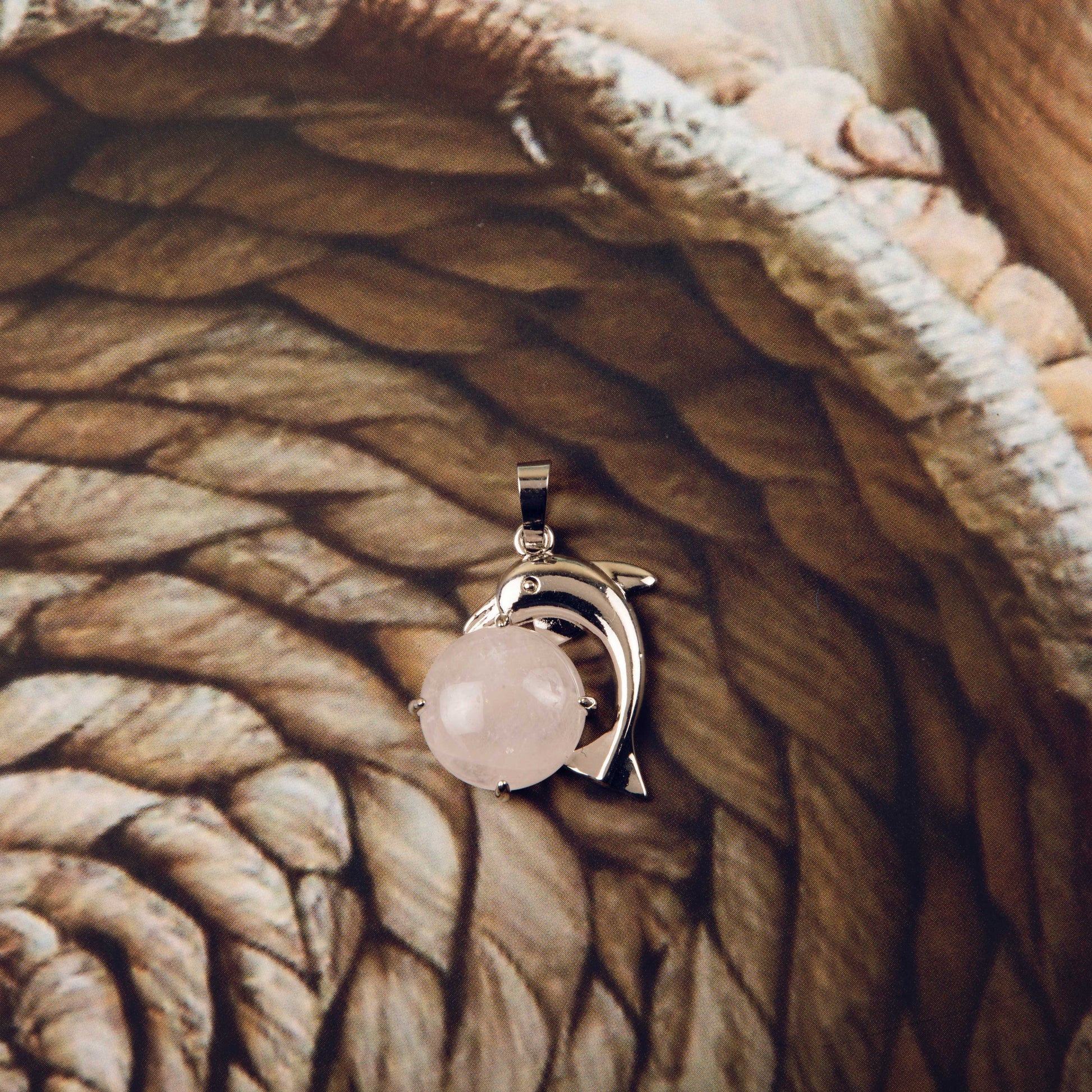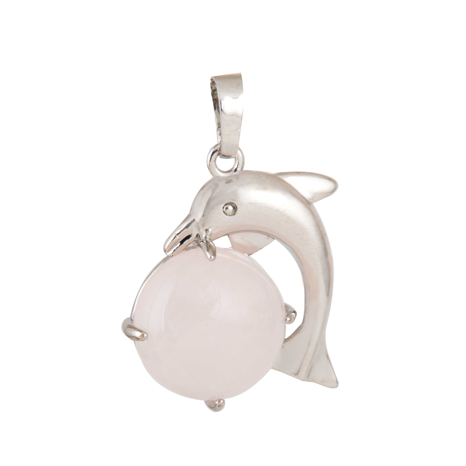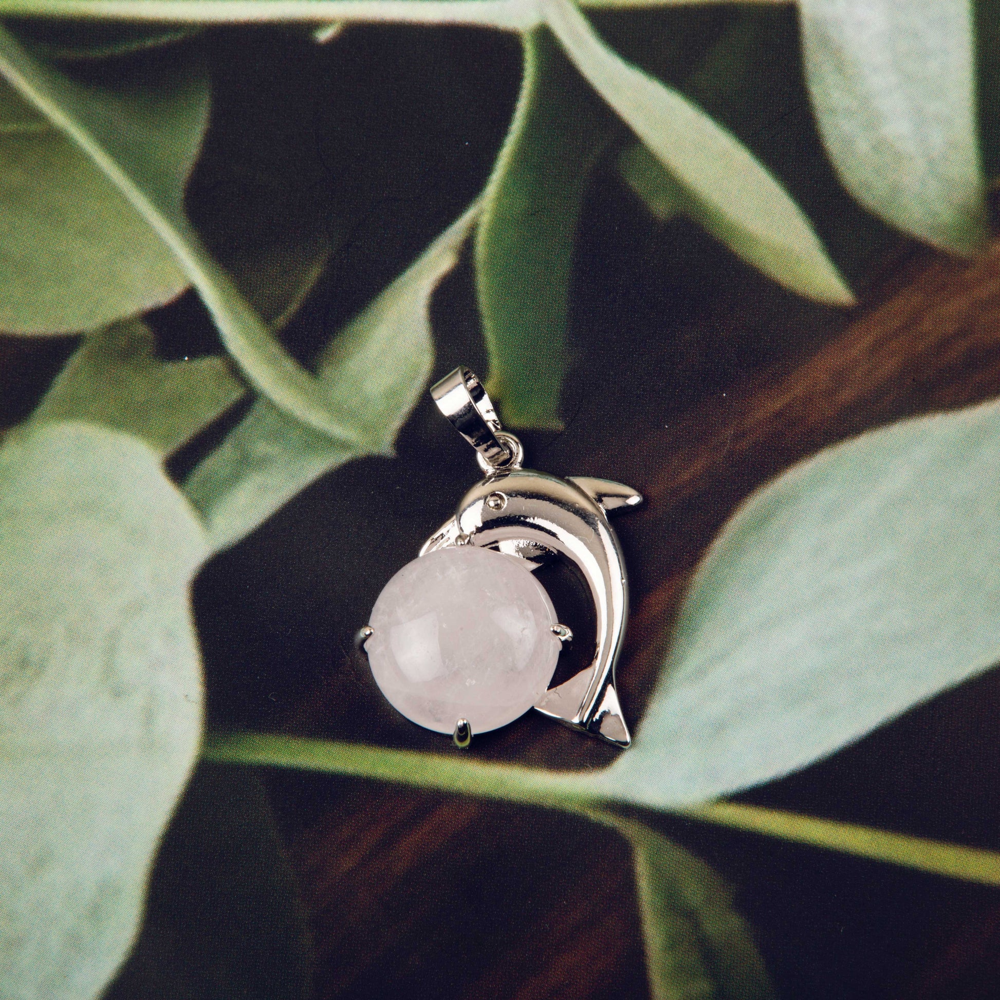 Natural Rose Quartz Dolphin Crystal Pendant in metal